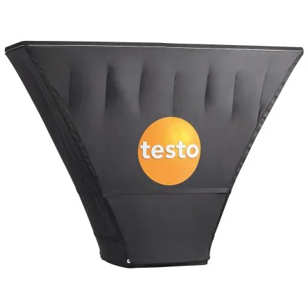 Lightweight Testo flow hood for accurate airflow measurement at swirl outlets.