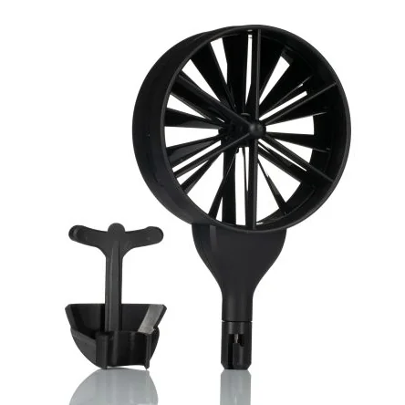 Testo Air Quality MeterMore applications, less equipment: if you already own one of our probes with a universal handle, you can easily expand your portfolio of probes with the 100 mm vane probe head. Combine the probe head with the adapter for air velocity probes and simply plug it onto the handle with cable or Bluetooth. For convenient measurements at ceiling outlets, we recommend the extendable telescope for air velocity probes including 90° angle. Note: Please note that you need the handle adapter (order number 0554 2160) to use this probe head in conjunction with the handles.Features and Benefits• Intuitive: parallel determination of air velocity, volume flow and air temperature • Convenient: probe head is easy to attach to the universal Bluetooth or cable handle or to the extendable telescope (all available to order separately) using the adapter • Precise: get the right results in next to no time, even in turbulent air flow – using the optionally available funnel set and volume flow straightener • Intelligent calibration concept: only send in the probe head for calibration