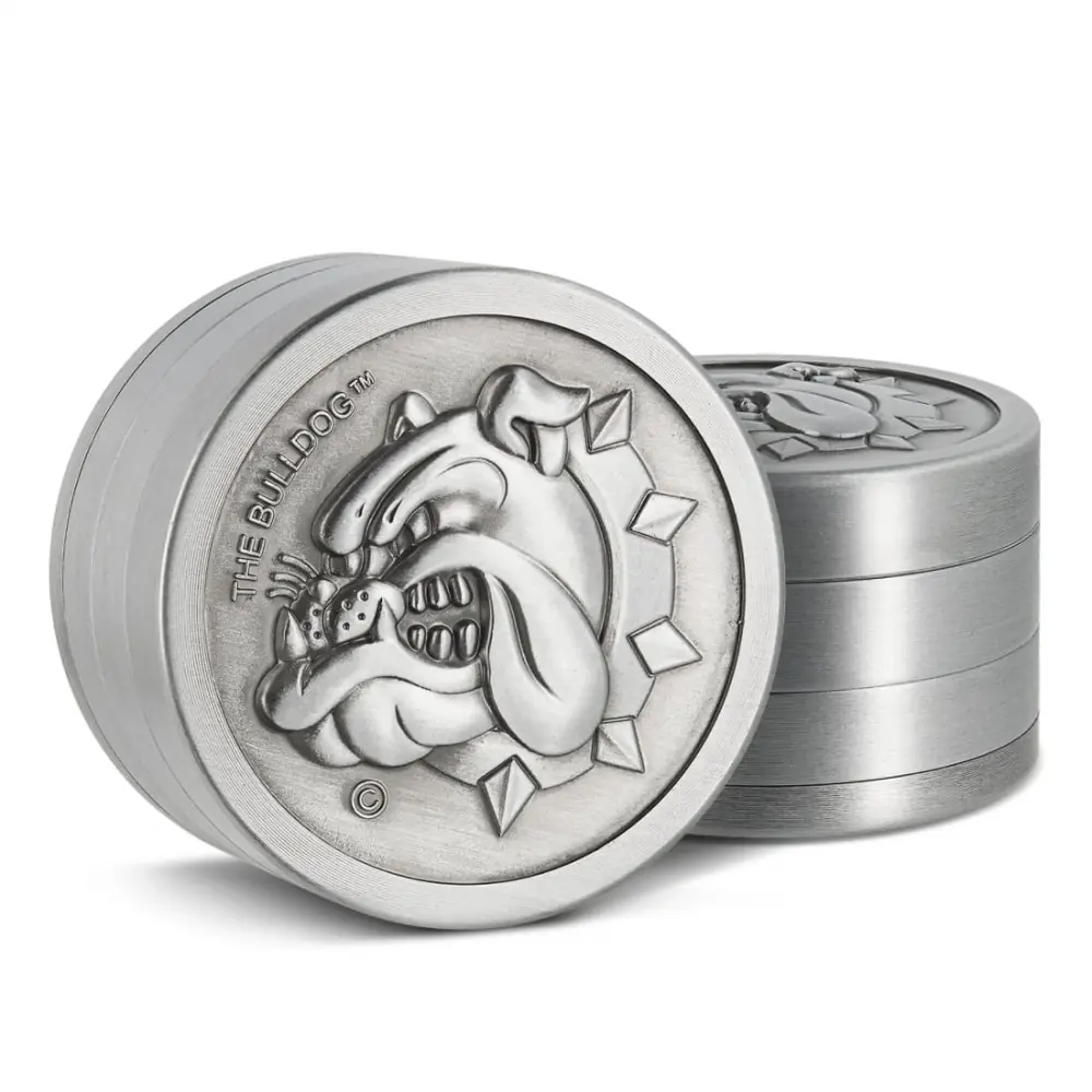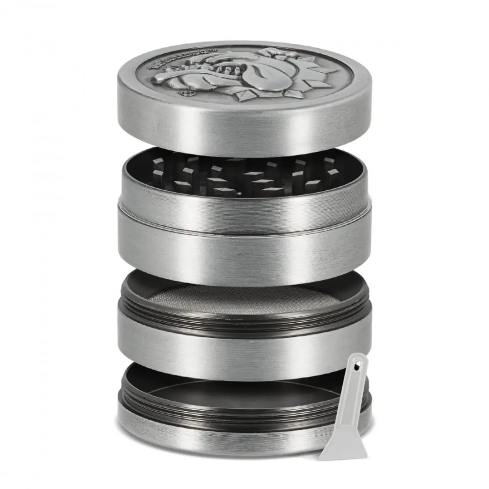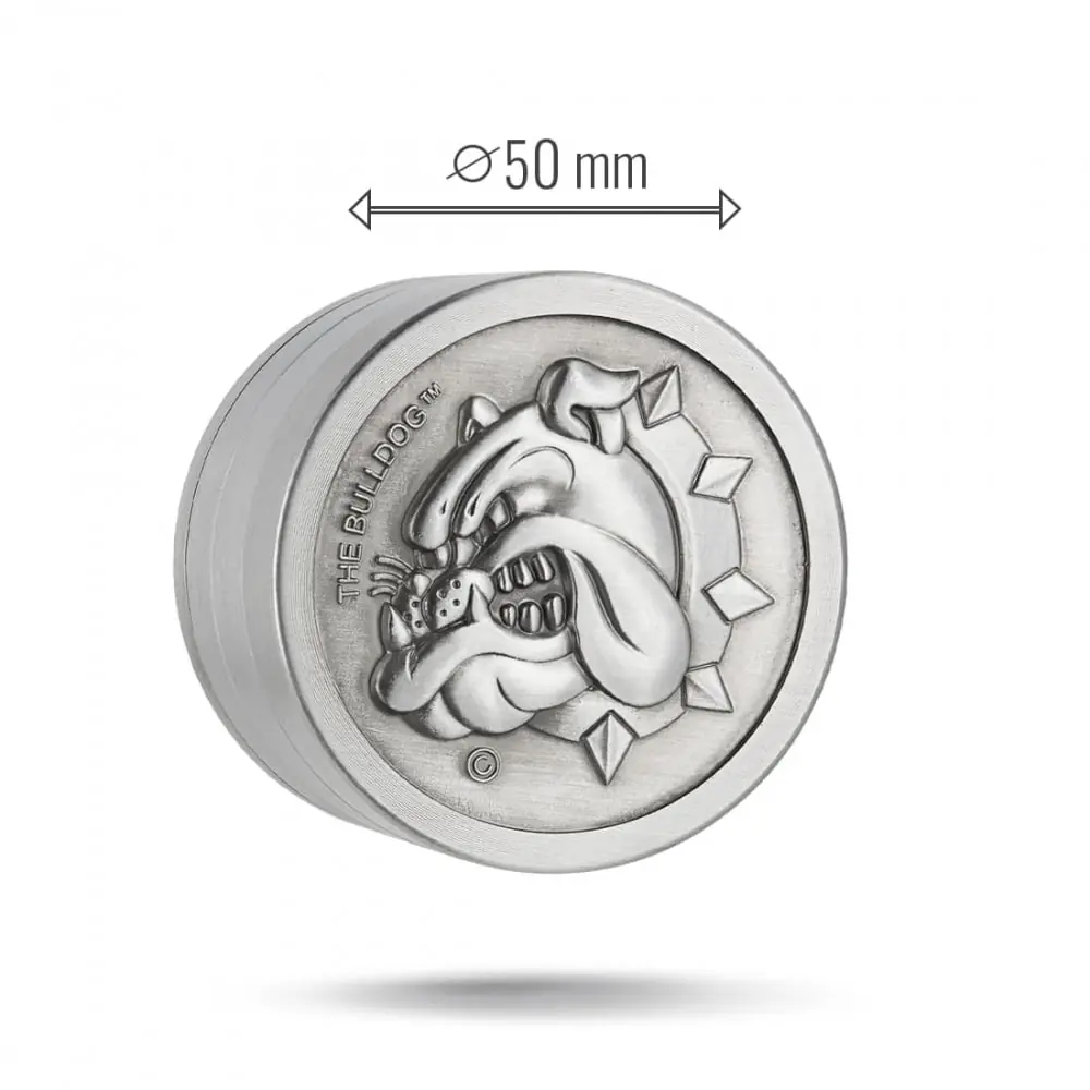 the bulldog 4-part aluminum grinder 50 mm in diameter is designed for maximum efficiency. it consists of four distinct parts: diamond teeth for precise grinding a section with sieve and scraper to separate fine particles and a base for recovery.