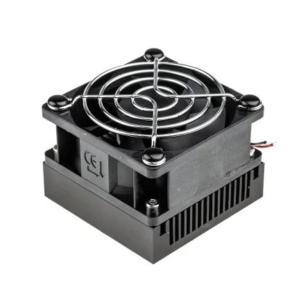 Efficient aluminum heatsink with fan, designed for high power thermoelectric applications.