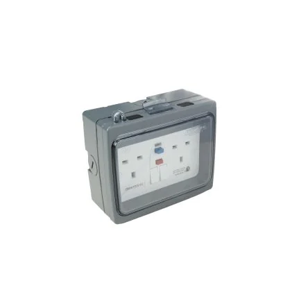 - Timeguard 13A, BS Fixing, Active, 2 Gang RCD Socket, Thermoplastic, Surface Mount , Switched, IP66 , Outdoor, 230 V ac, - TGV205N
