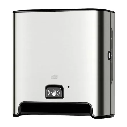 Experience touchless convenience with the Tork Plastic Steel Hand Towel Dispenser.