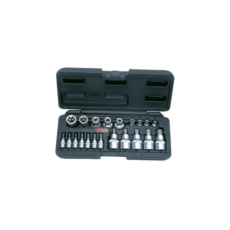 Optimize your DIY projects with the TORX socket and screwdriver setKS TOOLS, a complete set of 21 pieces designed to meet all your tooling needs. Whether you are a seasoned professional or a passionate amateur, this set is the essential tool for carrying out your projects with precision and efficiency. The TORX sockets, known for their ability to provide excellent grip on screws, will allow you to work with complete confidence, thereby reducing the risk of slipping and damaging screws.