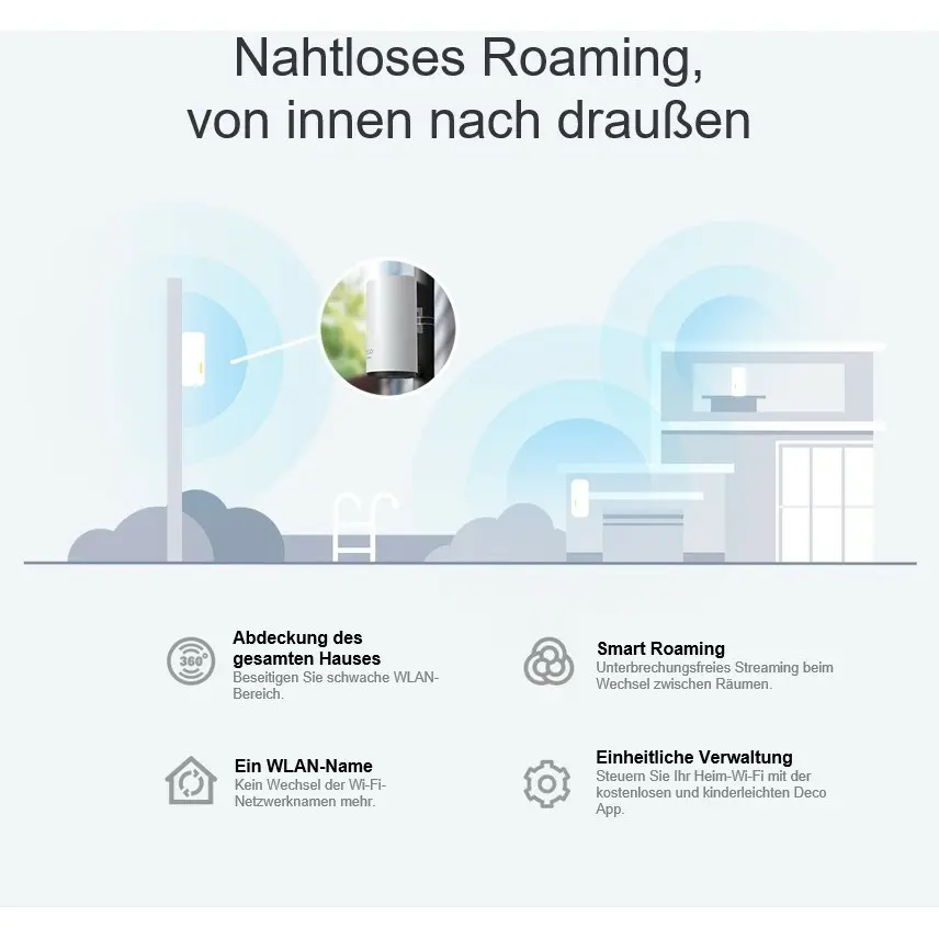 - AX3000 Dual-Band Wi-Fi 6- Enjoy binge-watching your favorite series in 4K with combined speeds of up to 3000 Mbps (574 Mbps on 2.4 GHz and 2402 Mbps on 5 GHz )†- Multiple mount options - Pole mount, wall mount, and tabletop- Working outdoor - Industry-leading IP65 dust & water resistance- Powered over Ethernet - Provide both data connection and electric power with a single cable- Full Gigabit Ethernet - 2 × Gigabit WAN/LAN Ethernet ports provide solid internet access at high speeds.- Work With All Decos - Compatible with every other Deco model to form a Mesh network.- TP-Link HomeShield - Provides comprehensive network protection, robust parental controls, and real-timeOutdoor / Indoor, enjoy Your WiFi Wherever You WantAX3000 Outdoor/Indoor Whole Home Mesh WiFi 6 UnitAX3000 Dual-Band WiFi 6 MeshIdeal for Your Latest Phones and LaptopsArmed with WiFi 6 technology, Deco whole home mesh WiFi is designed to deliver a huge boost in coverage, speed, and total capacity. Get on the latest mesh WiFi to enjoy the future network that loads faster and connects more.Ideal for Fast Outdoor Wi-FiDeco X50-Outdoor features a weatherproof enclosure and solid operating temperature, enabling strong Wi-Fi signals outside. Flexible installation and power supply make it even easier for outdoor use.IP65 Weatherproof Enclosure forOutdoor EnvironmentsRated as IP65 during Ingress Protection testing, a resilient weatherproof enclosure protects Deco X50-Outdoor against the harsh outdoor condition, such as dust ingress, shock, vibration, moisture and so on. Versatile Mounting SolutionsOur mounting kits are flexible to deploy with pole mount, wall mount and tabletop options,whether inside or outside.Engineered for More DevicesDeco products are aimed to dramatically improve capacity and efficiency in traffic-dense environments. No matter how many screens or devices are on at once, everyone is able to enjoy a more efficient network that loads faster without dragging down performance.Seamless Roaming, From Inside to OutsideTP-Link Mesh means Deco units work together to form one unified network. Your phone or tablet automatically connects to the fastest Deco as you move through your home, creating a truly seamless Wi-Fi experience.Protect Your Network and Everything on ItTP-Link’s premium security services keep your home network safe with cutting-edge features for network and IoT protection.Detect cyber threats to keep your privacy and connected devices well protected.- Real-Time IoT Protection- Malicious Site Blocker- Intrusion Prevention- Home Network ScannerManage online time and block inappropriate content to keep families healthy online.- User Profile by Age- Content Filter- Bedtime- Time RewardsPrioritize your bandwidth needs to get a faster networking experience.- Device PriorityGain full statistics and insights to help you know your home network better.- Internet User Overview- Online Time Analysis- Browser History Analysis- End Device StatisticsSimple. Easy. Yet Powerful.Setup and manage your network anytime and anywhere on the friendly TP-Link Deco app. In just three easy steps your entire home can be blanketed in strong and reliable WiFi.Control Anyway You Want- Easy ManagementManage your WiFi at home or away on the Deco app. See every connected device, prioritize your own, and set up a guest network.- Voice ControlUse an Amazon Alexa or Google Assistant-enabled device to control Deco X50-Outdoor with just your voice.- All Decos Work TogetherDeco X50-Outdoor is compatible with every other Deco model to form a Mesh network. Expand Mesh WiFi coverage anytime by adding more Decos.