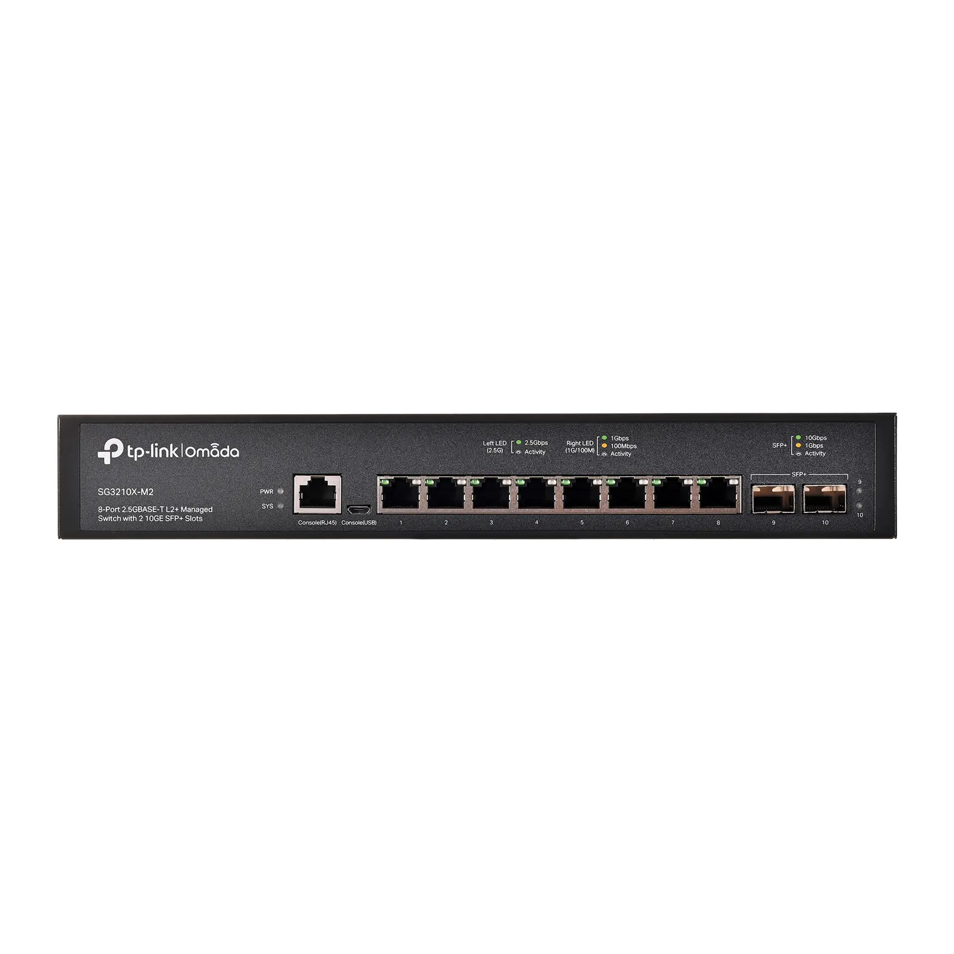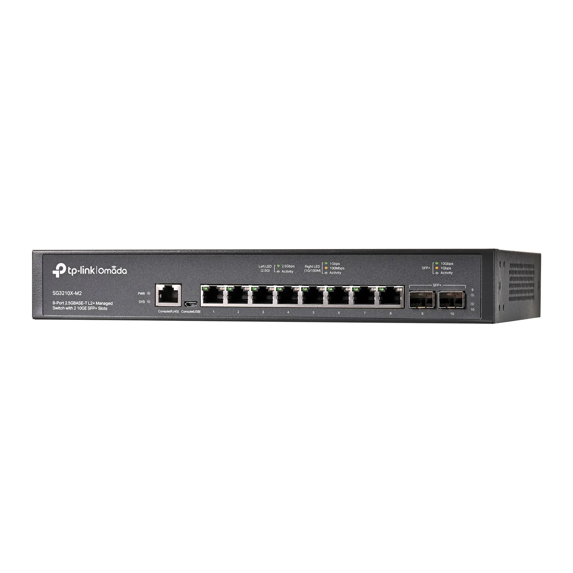Ultrafast 2.5G Managed Switch with 10G Uplink for Futuristic NetworkSG3210X-M210G Lightning-FastUplink Connection2× 10 Gbps SFP+ Slots for High-Bandwidth Connectivity2.5G Portsfor WiFi 7/6E/68× 2.5 Gbps Ports Uplock the Full Potential of WiFi 7/6E/6 APsCentralized CloudManagementSDN Solutions Integration for a Highly Efficient NetworkAdvanced L2+FeaturesStatic Routing, IGMP Snooping, 802.1Q VLAN and MoreEnterprise Switchwith 10G Uplink2× 10 Gbps SFP+ slots provide non-blocking switching performance and ultra-low latency, so reliable and lightning-fast connections to server and other switches are easily built.Unlock the Highest Performance of 2.5G Multi-Gig Bandwidth and Devices8× 2.5-Gigabit ports unlock the highest performance of your Multi-Gig bandwidth and devices. Auto-negotiation speed connections sense the link speeds and intelligently adjust for compatibility and optimal performance for all your devices, including desktop, 4K video, 2.5G Wi-Fi 7/6E/6 APs, 2.5G NAS, 2.5G PCIe adapter, gaming console, VR gaming, and more.Software Defined Networking (SDN) with Cloud AccessOmada’s Software Defined Networking (SDN) platform integrates network devices, including access points, switches and gateways, providing 100% centralized cloud management. Omada creates a highly scalable network—all controlled from a single interface. Seamless wireless and wired connections are provided, ideal for use in hospitality, education, retail, offices, and more.Secure NetworkingSecurity features include IP-MAC-Port-VID Binding, Port Security, Storm Control and DHCP Snooping to defend against a range of network threats. An integrated list of common DoS attacks is available, making it easier than ever to prevent them. In addition, the Access Control Lists (ACL, L2 to L4) feature restricts access to sensitive network resources by denying packets based on source and destination MAC address, IP address, TCP/UDP ports or VLAN ID. Users’ network access can be controlled via 802.1X authentication, which works with a RADIUS/Tacacs+ server to grant access only when valid user credentials are provided.Enterprise Level FeaturesA complete lineup of L2+ features are supported, including 802.1Q VLAN, Port Mirroring, STP/RSTP/MSTP, Link Aggregation Control Protocol, and 802.3x Flow Control. Advanced IGMP Snooping ensures the switch intelligently forwards multicast streams to only the appropriate subscribers, cutting out unnecessary traffic, while IGMP throttling & filtering restrict each subscriber on a port level to prevent unauthorized multicast access. Static Routing is a simple way of segmenting the network and internally routs traffic through the switch for improved efficiency.Advanced QoSVoice and video traffic can be prioritized based on IP address, MAC address, TCP port number, UDP port number, and more. With QoS (Quality of Service), voice and video services remain smooth, even when bandwidth is in short supply.ISP FeaturesQinQ, L2PT PPPoE ID Insertion and IGMP authentication features are provided, developed with service providers in mind. 802.3ah OAM and Device Link Detection Protocol (DLDP) offer easy monitoring and troubleshooting of Ethernet links.IPv6 SupportIPv6 functions such as Dual IPv4/IPv6 Stack, MLD Snooping, IPv6 ACL, DHCPv6 Snooping, IPv6 Interface, Path Maximum Transmission Unit (PMTU) Discovery and IPv6 Neighbor Discover guarantee your network is ready for the Next Generation Network (NGN) without upgrading your hardware.