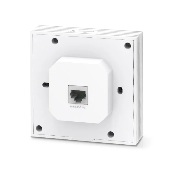 Match Your Room withAX3000 WiFi 6AX3000 Wall Plate WiFi 6 Access PointAX3000 WiFi 6 Speed2402 Mbps on 5 GHz + 574 Mbps on 2.4 GHz†High-Efficiency WiFi 6More connected devices enjoy faster speedsCentralized Cloud ManagementManage the whole network locally or from the cloud160 MHz ChannelDouble the data at peak transmission times on a single stream with HE160Enhanced SecurityWith guest networks, Captive Portal, and WPA3 encryptionSeamless RoamingUninterrupted streaming when moving between APs§Two Gigabit PortsOne downlink and one uplink for fast wired connection802.3af/at PoE SupportFlexible and convenient deploymentQuick, Simplified InstallationCompatible with 86 mm & EU standard junction boxLightning-Fast AX3000 WiFi 6 SpeedsWiFi 6 brings faster speeds, lower lag, less interference, and higher capacity. Enjoy more than twice the speed of WiFi 5 with new-era business WiFi 6 with speeds up to 2976 Mbps.Better User Experience with High-PerformanceWiFi 6 ConnectivityThe latest WiFi 6 features and advanced wireless techniques guarantee higher network efficiency and lower latency. More than Speed, Security MattersSafeguard your network against brute force attack and snooping with WPA3 enterprise-grade security protection, portal authentication, and segregated guest networks.Secure Guest Network with Up to 16 SSIDsGuest networks provide enhanced security. Different SSIDs also enable flexible access management.Boost Business with Facebook WiFi and SMS LoginCaptive portals (including SMS, Facebook WiFi, Voucher) and 802.1x authentication ensure authorized guests can access the network. Boost your business with a customized marketing page.WPA3 for Worry-Free Open Public NetworksWPA3 provides more data security for previously unsecured and open WiFi hotspots with advanced enterprise security.Gigabit Ports to Bridge NetworkThe gigabit downlink port allows to connect wired device to the gigabit network.Effortless Deployment with PoE PoweredWith 802.3af/802.3at PoE support, there’s no need for more wiring. Plug it into the existing Ethernet cables, and you’re ready.Quick, Simplified InstallationWith an easy-to-install design, there is no need to bring someone in to install our EAP.Auto Channel Selection and Power Adjustment to Optimize Overall PerformanceProvides powerful wireless performance while significantly reducing WiFi interference by automatically adjusting the channel settings and transmission power levels of neighboring APs in the same networkSeamless Integration into Omada SDNThe Omada Software Defined Networking (SDN) platform integrates network devices including access points, switches, and routers to provide 100% centralized cloud management and create a highly scalable network—all controlled from a single interface.Easy Management with the Omada AppFollow configuration instructions on the Omada app to get set up in minutes. Omada lets you configure settings, monitor the network status, and manage clients, all from the convenience of your mobile device.