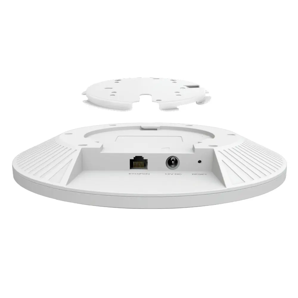 High-End Business WiFi 6 to Power Up Your BusinessAX5400 Ceiling Mount Wi-Fi 6 Access PointAX5400 WiFi 6 Speed4804 Mbps on 5 GHz; 574 Mbps on 2.4 GHz High-Efficiency WiFi 6More connected devices can enjoy faster speeds Centralized Cloud ManagementManage the whole network locally or from the cloud 2.5GE Wired PerformanceBoosts overall throughput with a 2.5 Gbps Ethernet port 160 MHz ChannelDouble the data at peak transmission times on a single stream with HE160 Auto Channel Selection and Power AdjustmentOptimize overall performance by reducing WiFi interference Omada Mesh TechnologyMore flexible and convenient wireless deployment§ Seamless RoamingUninterrupted streaming when moving between APs§ PoE+ PoweredSupports both DC (adapter not included) and 802.3at PoE+ for flexible installationsDesigned for Business EnvironmentsRequiring High-Performance WiFiHospitalityHigh-quality and full coverage Guest WiFi EducationHigh-security WiFi to connect more devices Shopping MallSeamless marketing WiFi coverage to boost business OfficeStable, seamless, and high-security WiFi coverage Meeting RoomFaster streaming, downloading, video conferencing, and moreHigh-End Business Wi-Fi 6 Bring Real Power to Your BusinessWiFi 6 brings faster speeds, lower lag, less interference, and higher capacity.Blazing-Fast AX5400 Wi-Fi 6 SpeedsHigh-end business WiFi 6 with speeds up to 5378 Mbps brings 2.6-time speeds than WiFi 5.Seamless Integration into Omada SDNThe Omada Software Defined Networking (SDN) platform integrates network devices including access points, switches, and routers to provide 100% centralized cloud management and create a highly scalable network—all controlled from a single interface.Easy Deployment & Higher Performance by Omada MeshEasy Pairing, Less WiringWith Mesh technology, Omada EAPs save you from extra wires by wirelessly extending your WiFi signal further and more flexibly to hard-to-wire areas.Optimized Network PerformanceIntelligent self-organization optimizes the best path between EAPs while self-healing ensures you stay online even when one AP is disrupted.Always Stay Smooth with Fast RoamingEnsures customers to enjoy uninterrupted streaming when moving around by switching clients automatically to the access points with the optimal signal.Boosted Network Security and EfficiencySecure Guest Network with Up to 16 SSIDsGuest network access provides enhanced security to guests. Different SSIDs also enable flexible access management.Boost Business with SMS LoginCaptive portal (including SMS and Voucher) and 802.1x authentication help maintain authorized guests to use the network. Boost your business with a customized marketing page.WPA3 for Worry-Free Open Public NetworksWith advanced enterprise security, WPA3 provides more data security for previously unsecured and open WiFi hotspots.Band SteeringAutomatically moves dual band devices onto the wider 5GHz band for faster connections.Load BalanceEnsures large numbers of users have smooth network experiences in high-density business networksAirtime FairnessIncreases average network throughput in heavily congested environments