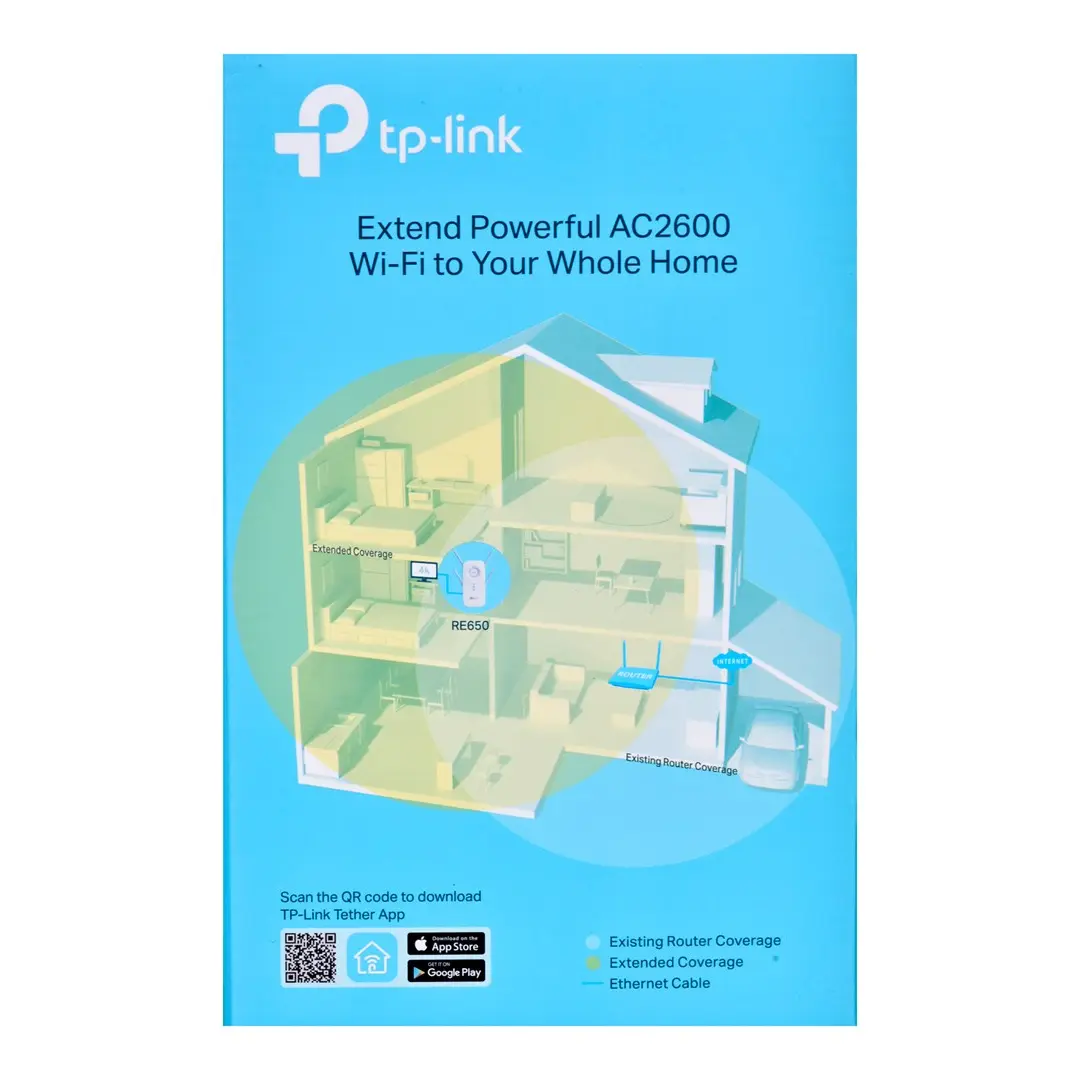 - Superior Extended Range β Four fixed external antennas extend Wi-Fi coverage by up to 14,000 sq. ft.- 4-Stream for AC2600 Dual Band Wi-Fi β Simultaneous 800Mbps on 2.4GHz + 1733Mbps on 5GHz- 4Γ4 MU-MIMO β Simultaneously transfers data to multiple devices for 4x faster performance- Beamforming Technology β Send targeted Wi-Fi signal to individual devices for stronger connections- Gigabit Ethernet Port β Provide faster wired connections to smart TVs, computers and gaming consoles- Intelligent Signal Light β Helps to determine the best location for optimal Wi-Fi coverage by indicating the signal strength in the current placement- AP Mode β create a new Wi-Fi access point to enhance your wired network with Wi-Fi capability- TP-LINK Tether App β Easily access and manage your network using any iOS or Android mobile device- Ultimate Compatibility β Extend the range of any Wi-Fi router or wireless access pointFar Reaching Wi-Fi and Powerful PerformancePowerful Quad-Antenna design with Beamforming delivers highly targeted Wi-Fi connections to improve throughput and signal quality for stronger Wi-Fi across your home, while extending your routers coverage by 14,000 square feet. The Intelligent Processing Engine balances the demands of your devices to keep their connections fast and uninterrupted, sending Wi-Fi traffic to dedicated processors while the powerful dual-core CPU handles the rest.4-Stream AC2600 Dual Band Wi-FiUsing 4-Stream and TurboQAM technology to boost its Wi-Fibandwidth, the RE650 reaches industry leading maximum speeds of up to 800 Mbps on 2.4GHz and 1733 Mbps on 5GHz. This provides the performance necessary to support your most demanding online applications, including 4K streaming and gaming.More Connections and Faster for EveryoneMU-MIMO technology allows the RE650 to serve up to four devices at once, reducing wait time and greatly increasing Wi-Fi throughput for every device. With MU-MIMO, the RE650 runs up to 4x faster than traditional AC range extender.High-Speed Gigabit Wired ConnectionThe RE650βs Gigabit Ethernet port lets you connect a wired device such as a game console or smart TV to create a fast, reliable wired connection.Find the Best Spot with Intelligent Signal IndicatorThe Intelligent Signal Light helps you quickly find the best location to install the RE650.Built-In Access Point ModeRE650 is more than a wireless range extender. Simply plug an Ethernet cable into its Ethernet port, and easily turn your wired internet connection into a 4Γ4 MU-MIMO dual band wireless access point.Drop-Free and Seamless Dual Band ConnectionsIf one of the main router's dual bands drops suddenly, or in case the main router can only deliver single band, the RE650 still provides stable dual-band connections for clients, allowing you to enjoy stable and drop-free experience on all your devices.Easy Monitoring and ControlTP-Link Tether is an intuitive app that allows users to conveniently monitor the state of your range extender, controlling its functions and altering its settings from any compatible mobile device.