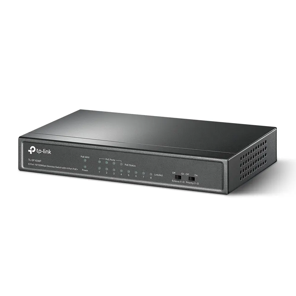 Expand your network effortlessly with the TP-Link TL-SF1008P, featuring 4 PoE ports for easy device connectivity.