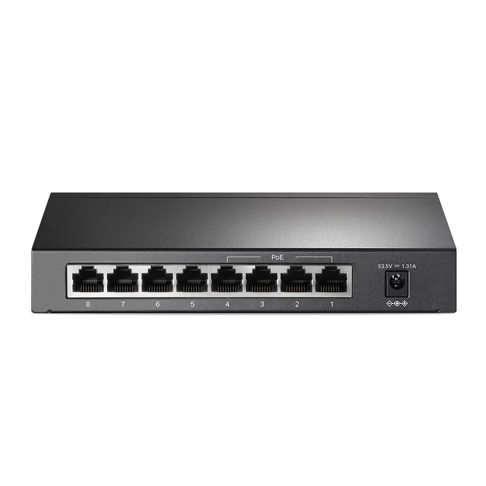 What This Product DoesTL-SF1008P is an 8 10/100Mbps ports unmanaged switch that requires no configuration and provides 4 PoE (Power over Ethernet) ports. It can automatically detect and supply power with all IEEE 802.3af compliant Powered Devices (PDs). In this situation, the electrical power is transmitted along with data in one single cable allowing you to expand your network to where there are no power lines or outlets, where you wish to Âfix devices such as APs, IP Cameras or IP Phones, etc.Power over Ethernet4 of the 8 Auto-Negotiation RJ45 ports (port-1 to port-4) of the switch support Power over Ethernet (PoE) function. These PoE ports can automatically detect and supply power with those IEEE 802.3af compliant Powered Devices (PDs). -Overload ArrangementTL-SF1008P has the priority function which will help protect the system when the system power is overloaded. If all PoE PDs power consumption is >= 57W, a priority will be arranged among the PoE ports, then the system will cut o‑ the power of the lowest-priority port. -Port Priority FunctionPriority (port-1=port-2=port-3>port-4): This function will help to ensure the normal operation of the system, it means Port 4 will be cut off when all total PoE PDs power consumption exceed 57W. For an example, Port 1, 2 and 4 is using 15.4W (maximum power for per port is 15.4W); the system power is 46.2W in total. If there is an additional PD inserted to Port 3 with 12W, and then the system will cut off the power of Port 4 because of the overloaded power, this means Port 1, 2 will use 15.4W, and Port3 will use 12W, no power will be supplied to Port 4.Easy To UseTL-SF1008P is easy to install and use. It requires no confiÂguration and installation. With desktop design, outstanding performance and quality, the TP-LINK’s TL-SF1008P 8-Port 10/100Mbps Desktop Switch with 4-Port PoE is an ideal choice for expanding your home or office network.
