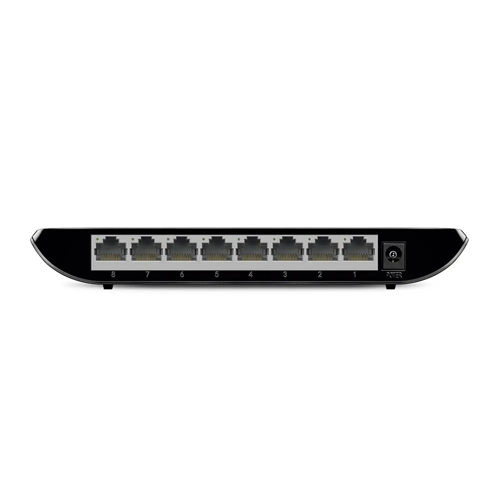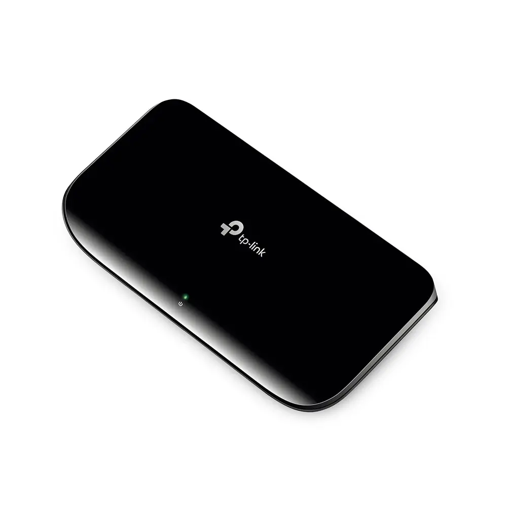 - 8 Gigabit Auto-Negotiation RJ45 ports, Supports Auto MDI / MDIX- Green Ethernet technology saves the power up to 80%- IEEE 802.3x flow control provides reliable data transfer- Plastic case, desktop or wall-mounting design- Plug and play, no configuration requiredWhat This Product DoesThe TP-Link 8-Port Gigabit desktop switch TL-SG1008D provides you an easy way to make the transition to Gigabit Ethernet. Increase the speed of your network server and backbone connections, or make Gigabit to the desktop a reality. Moreover, TL-SG1008D adopts lower power consumption design. With the innovative energy-efficient technology, the TL-SG1008D can save up to 80% of the power consumption, making it an eco-friendly solution for your home or office network.Gigabit SwitchFeatured with 8 10/100/1000Mbps ports, TL-SG1008D greatly expands your network capacity, enabling instant large files transferring. So,power users in the home, office, workgroup, or creative production environment can now move large, bandwidth-intensive files faster. Transfer graphics, CGI, CAD, or multimedia files across the network instantly.Go Green With Your EthernetYou now have the choice to go green when upgrading to a gigabit network! This new generation TL-SG1008D 8-Port Gigabit Desktop Switch features the latest innovative energy-efficient technologies that can greatly expand your network capacity with much less power. It automatically adjusts power consumption according to the link status and cable length to limit the carbon footprint of your network.Power down Idle PortsWhen a computer or network equipment is off, the corresponding port of a traditional switch will continue to consume considerable amounts of power. The TL-SG1008D can automatically detect the link status of each port and reduce the power consumption of ports that are idle, resulting in up to an 80% reduction in power use.Power Budget According to Cable LengthIdeally, shorter cable would use less power because of less power degradation over their length; this is not the case with most devices as they will use the same amount of power across the cable regardless of the length.Easy to UseThe auto features of this gigabit switch make installation plug and play and hassle-free. No configuring is required. Auto MDI/MDIX eliminate the need for crossover cables. Auto-negotiation on each port senses the link speed of a network device (either 10, 100, or 1000 Mbps) and intelligently adjusts for compatibility and optimal performance.