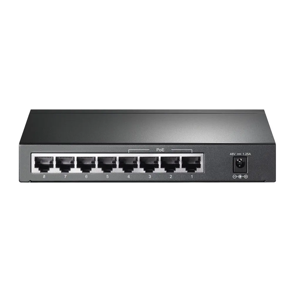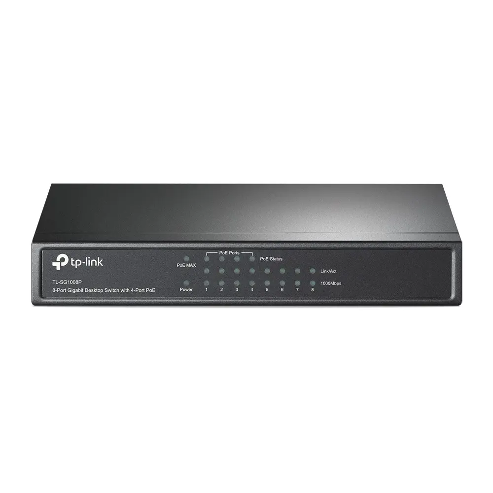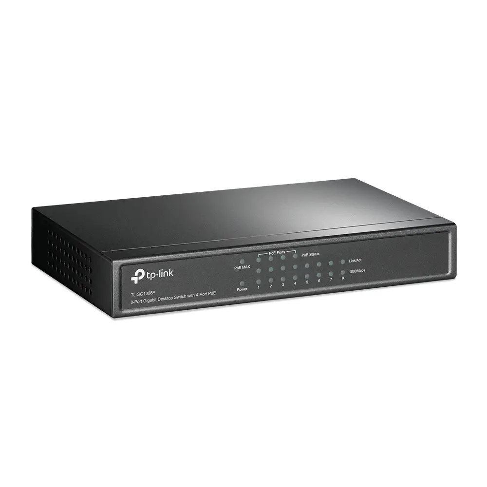 What This Product Does8-Port Gigabit Desktop Switch with 4-Port PoE provides the seamless network connection. It integrates 1000Mbps Gigabit Ethernet and 10/100Mbps Fast Ethernet network capabilities.How This Product Works4 of the 8 Auto-Negotiation RJ45 ports (port-1 to port-4) of the switch support Power over Ethernet (PoE) function. These PoE ports can automatically detect and supply power with those IEEE 802.3af compliant Powered Devices (PDs). In this situation, the electrical power is transmitted along with data in one single cable allowing you to expand your network where there are no power lines or outlets, where you wish to fix devices such as APs, IP Cameras or IP Phones, etc.Overload ArrangementTL-SG1008P has the priority function which will help protect the system when the system power is overloaded. If all PoE PDs power consumption is >= 53W, a priority will be arranged among the PoE ports, then the system will cut off the power of the lowest-priority port.Port Priority FunctionPriority (port-1>port-2>port-3>port-4): This function will help protect the system if the system power becomes overloaded. For example, Port 1, 2 and 4 are using 15.4w (maximum power per port is 15.4W), the system power is 46.2w in total (PoE max LED is red ). If there is an additional PD inserted to Port 3 with 10w then the system will cut off Port 4 to protect the system, this means Port 1, 2 will use 15.4w, and Port3 will use 10w, and no power will be supplied to Port 4.Easy To UseTL-SG1008P is easy to install and use. It requires no configuration and installation. With desktop design, outstanding performance and quality, the TP-LINK TL-SG1008P 8-Port Gigabit Desktop Switch with 4-Port PoE is a great selection for expanding your home or office network.