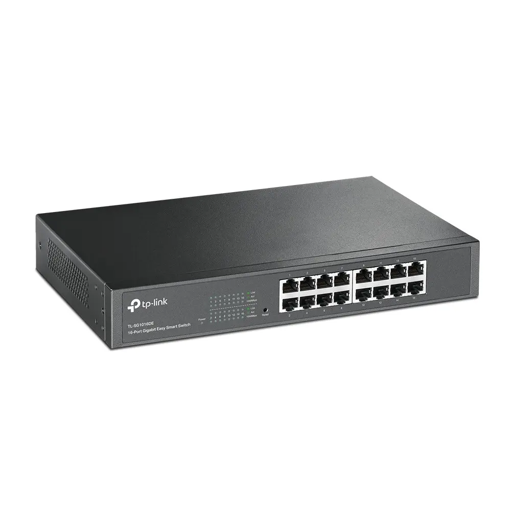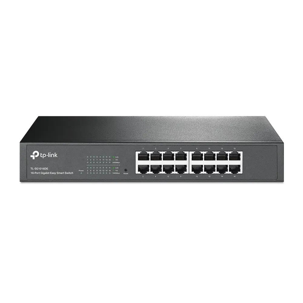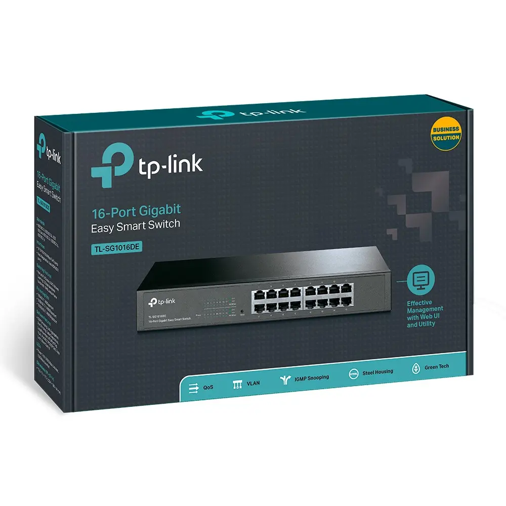 What This Product DoesThe TL-SG1016DE 16-Port Gigabit Easy Smart switch is an ideal upgrade from an unmanaged switch, designed for Small and Medium Business networks that require simple network management. Network administrators can effectively monitor traffic via Port Mirroring, Loop Prevention and Cable Diagnostics features. To optimize traffic on your business network, TL-SG1016DE offers both port and tag based QoS to keep latency-sensitive traffic moving smoothly and jitter-free. Additionally, port-based, tag-based and MTU VLAN can improve security and meet more network segmentation requirements. Moreover, with its innovative energy-efficient technology, the TL-SG1016DE can save up to 40% of power consumption, making it an eco-friendly solution for your business network.Simple & Effective ManagementTP-LINK’s Gigabit Easy Smart switch, TL-SG1016DE offers network monitoring for users to observe traffic behavior. With Port Mirroring, Loop Prevention and Cable Diagnostics features, TL-SG1016DE can identify and even locate connection problems on your business network. Moreover, administrators can designate the priority of the traffic based on Port Priority and 802.1P Priority, to ensure that voice and video are always clear, smooth and lag-free. Additionally, to improve security and network performance, TL-SG1016DE supports MTU VLAN, port-based VLAN and 802.1Q-based VLAN functions. TL-SG1016DE is an upgrade from the plug-and-play Unmanaged Switch, delivering great value while empowering your network and similarly delivering great value to the end user.Go Green With Your EthernetYou now have the choice to go green when upgrading to a gigabit network! This new generation of TL-SG1016DE 16-Port Gigabit Easy Smart Switch features the latest energy-efficient technologies that can greatly expand your network’s capacity with much less power. It automatically adjusts power consumption according to the link status and cable length to limit the carbon footprint of your network.Power down Idle PortsWhen a computer or network equipment is off, the corresponding port of a traditional switch will continue to consume considerable amounts of power. The TL-SG1016DE can automatically detect the link status of each port and reduce the power consumption of ports that are idle.Power Budget According to Cable LengthIdeally, shorter cables would use less power with less power degradation over their length; this is not the case with most devices as they will use the same amount of power across the cable regardless of whether it is 10 or 50 meters in length. The TL-SG1016DE analyzes the length of the Ethernet cable connected and adjusts the power usage accordingly, rather than keeping the power consumption in a conventional solution.Ease of UseTL-SG1016DE is easy to use and manage. Auto MDI/MDI-X crossover on all ports eliminate the need for crossover cables or uplink ports. Auto-negotiation on each port senses the link speed of a network device (either 10, 100, or 1000 Mbps) and intelligently adjusts for compatibility and optimal performance. Its compact size makes it ideal for desktops with limited space while also being Rack-mountable, convenient and safe. Dynamic LED lights provide real-time work status display and basic fault diagnosis.
