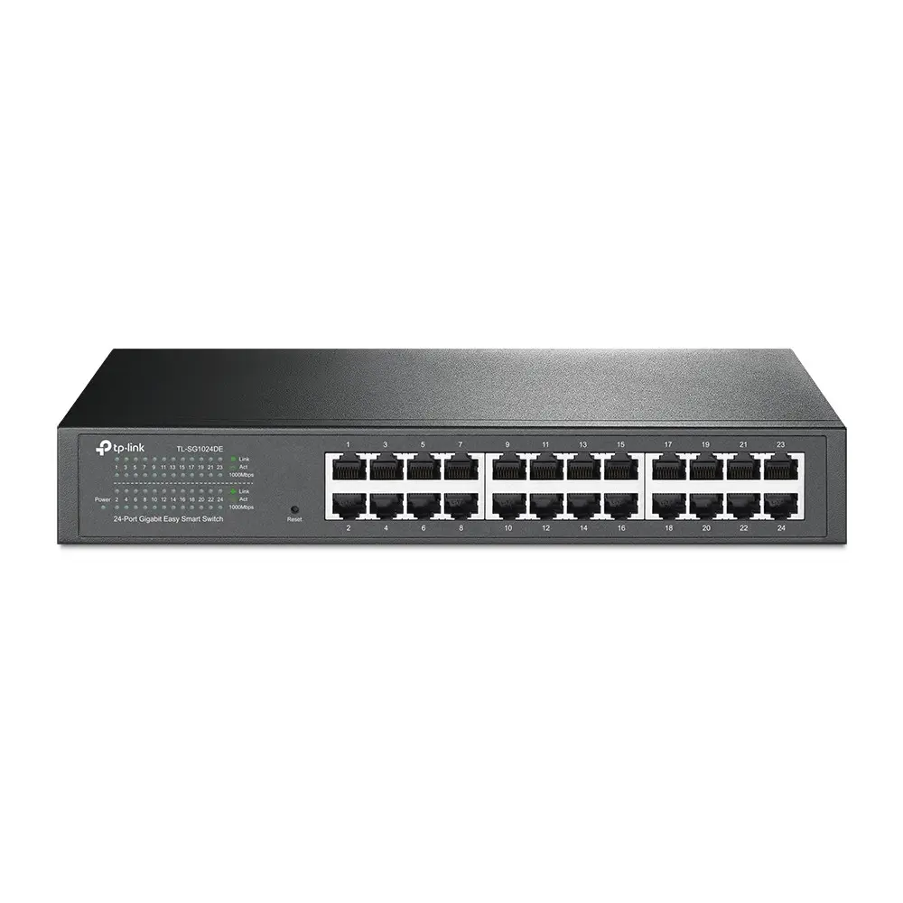 What This Product DoesThe TL-SG1024DE 24-Port Gigabit Easy Smart switch is an ideal upgrade from an unmanaged switch, designed for Small and Medium Business networks that require simple network management. Network administrators can effectively monitor traffic via Port Mirroring, Loop Prevention and Cable Diagnostics features. To optimize traffic on your business network, TL-SG1024DE offers both port and tag based QoS to keep latency-sensitive traffic moving smoothly and jitter-free. Additionally, port-based, tag-based and MTU VLAN can improve security and meet more network segmentation requirements. Moreover, with its innovative energy-efficient technology, the TL-SG1024DE can save up to 40% of power consumption, making it an eco-friendly solution for your business network.Simple & Effective ManagementTP-LINK’s Gigabit Easy Smart switch, TL-SG1024DE offers network monitoring for users to observe traffic behavior. With Port Mirroring, Loop Prevention and Cable Diagnostics features, TL-SG1024DE can identify and even locate connection problems on your business network. Moreover, administrators can designate the priority of the traffic based on Port Priority and 802.1P Priority, to ensure that voice and video are always clear, smooth and lag-free. Additionally, to improve security and network performance, TL-SG1024DE supports MTU VLAN, port-based VLAN and 802.1Q-based VLAN functions. TL-SG1024DE is an upgrade from the plug-and-play Unmanaged Switch, delivering great value while empowering your network and similarly delivering great value to the end user.Go Green With Your EthernetYou now have the choice to go green when upgrading to a gigabit network! This new generation of TL-SG1024DE 24-Port Gigabit Easy Smart Switch features the latest energy-efficient technologies that can greatly expand your network’s capacity with much less power. It automatically adjusts power consumption according to the link status and cable length to limit the carbon footprint of your network.Power down Idle PortsWhen a computer or network equipment is off, the corresponding port of a traditional switch will continue to consume considerable amounts of power. The TL-SG1024DE can automatically detect the link status of each port and reduce the power consumption of ports that are idle.Power Budget According to Cable LengthIdeally, shorter cables would use less power with less power degradation over their length; this is not the case with most devices as they will use the same amount of power across the cable regardless of whether it is 10 or 50 meters in length. The TL-SG1024DE analyzes the length of the Ethernet cable connected and adjusts the power usage accordingly, rather than keeping the power consumption in a conventional solution.Ease of UseTL-SG1024DE is easy to use and manage. Auto MDI/MDI-X crossover on all ports eliminates the need for crossover cables or uplink ports. Auto-negotiation on each port senses the link speed of a network device (either 10, 100, or 1000 Mbps) and intelligently adjusts for compatibility and optimal performance. Its compact size makes it ideal for desktops with limited space while also being rack-mountable, convenient and safe. Dynamic LED lights provide real-time work status display and basic fault diagnosis.