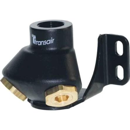 Durable brass wall bracket for compressed air systems with a convenient drain outlet.