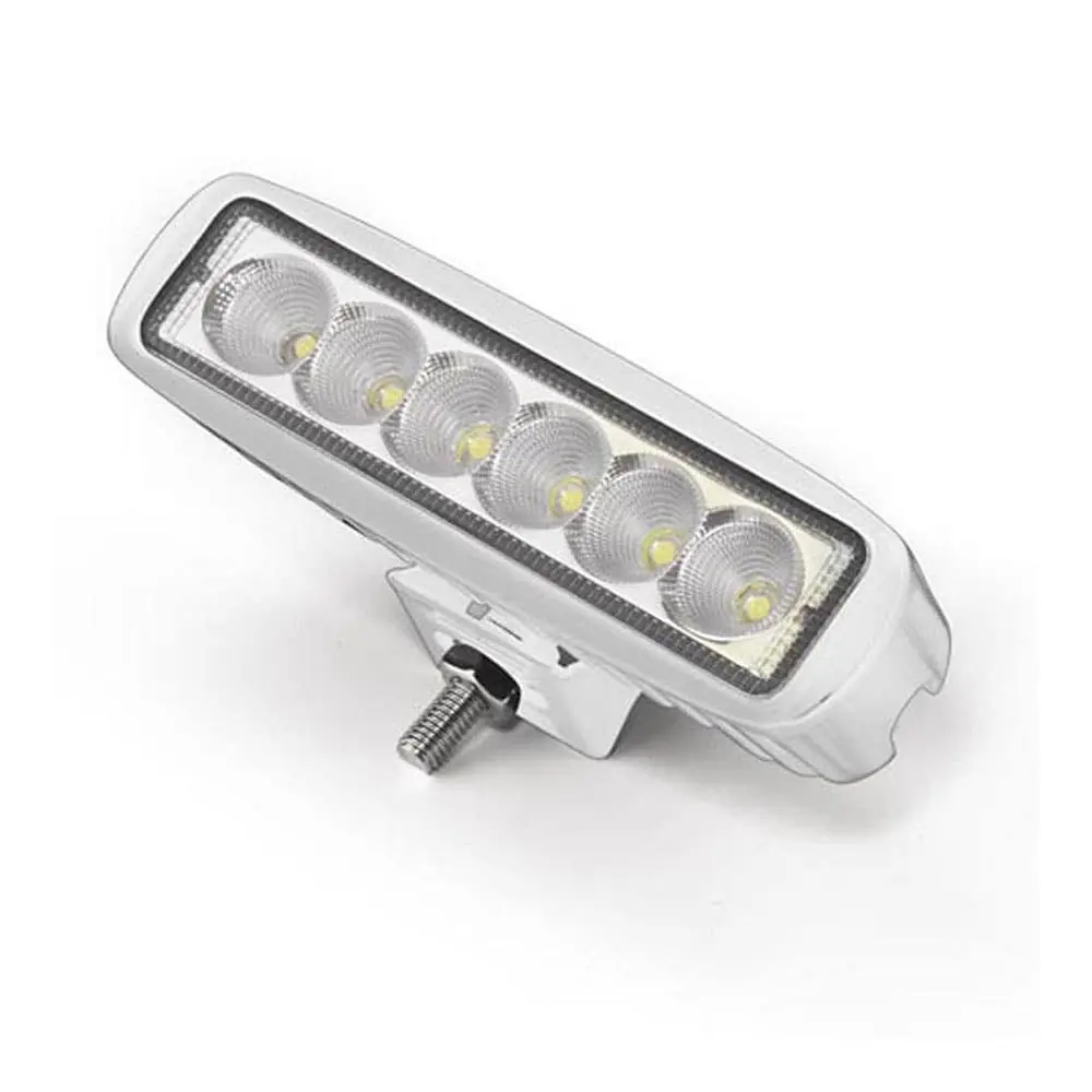 The High Power Waterproof LED Spotlight by Trem is a versatile and durable lighting solution designed for marine and outdoor applications. This rectangular projector features six 3W LEDs, delivering a total output of 1200 lumens. It operates within a voltage range of 10-30 V DC and consumes 18 W of power. The spotlight is housed in a white aluminum casing with a UV-resistant ASA support, ensuring longevity and resistance to harsh environmental conditions. It offers adjustable mounting options, allowing installation flat, vertically, or horizontally to suit various lighting needs.