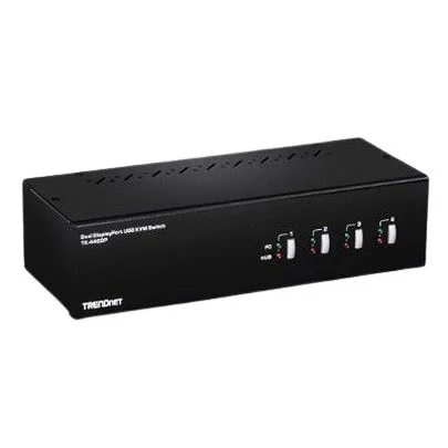 Manage dual monitors effortlessly with the Trendnet KVM switch.