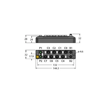 The Turck, Compact Multiprotocol I/O Module for Ethernet has 8 Digital PNP Outputs 0.5 A.PROFINET device, Ethernet/IP device or Modbus TCP slave Integrated Ethernet switch Supports 10 Mbps / 100 Mbps 2x M8, 4-pin, Ethernet fieldbus connection Glass fibre reinforced housing Shock and vibration tested Fully potted module electronics Protection classes IP65, IP67, IP69K M8, 4-pin connector for power supply Galvanically isolated voltage groups Max. 0.5A per output Output diagnostics per channel FLC/ARGEE programmable
