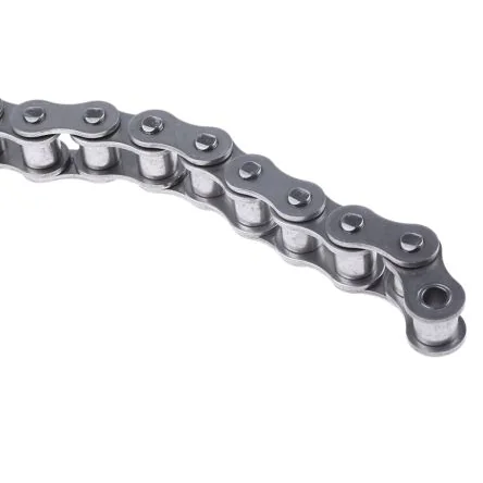 British Standard - to DIN 818187-1 (ISO 606). British Standard Simplex Chain - Stainless Steel. Suitable for the food industry Solid rollers Low magnetism Corrosion Resistant Supplied in 5 mtr (16.4 ft) lengths plus connectors Manufactured in stainless steel type 304 Hardened stainless steel bearing pin