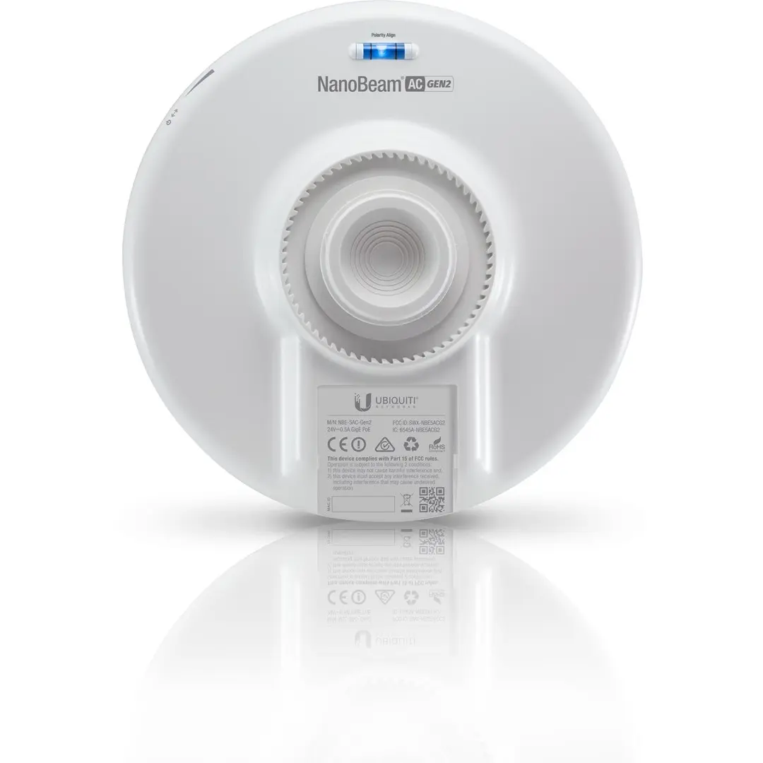 Incorporating innovative industrial design with proprietary airMAX ac technology, the NanoBeam AC is ideal for CPE deployments requiring maximum performance from the smallest possible footprint.Management Wi-Fi RadioThe NanoBeam AC integrates a separate Wi-Fi radio for fast and easy setup using your mobile device.Improved Surge ProtectionThe NanoBeam AC features enhanced protection against ESD events.Superior ProcessingUbiquiti's airMAX engine with custom IC dramatically improves TDMA latency and network scalability. The custom silicon provides hardware acceleration capabilities to the airMAX scheduler, to support the high data rates and dense modulation used in airMAX ac technology.Incredible Antenna “Beam” PerformanceThe form factor of the NanoBeam AC features the highest gain for its size. The NanoBeam AC’s excellent beam directivity provides the best performance in high-noise environments.Performance BreakthroughairMAX ac products offer improved latency, noise immunity, scalability and significantly increased throughput performance.Advanced Software TechnologyUbiquiti’s airMAX technology is proven in millions of deployments worldwide, exhibiting outstanding performance in outdoor environments. The TDMA airMAX protocol enables unprecedented scalability, high throughput and low latency in unlicensed, multipoint networks.Plug and Play InstallationThe NanoBeam AC mounts to a variety of surfaces including poles or walls, and offers the freedom of three-axis alignment. No screws are required for pole-mounting, and only a single wall screw (not included) is required for wall-mounting.Now with airOS8airOS®8 provides powerful features, including airMAX ac protocol support, real-time RF analytics, and an all-new design for enhanced usability.
