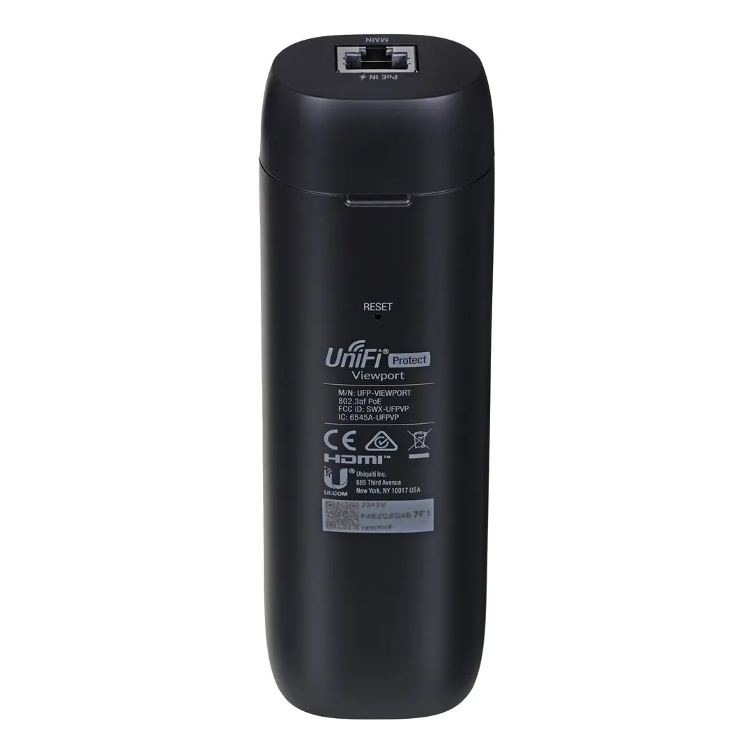 The UniFi Protect ViewPort allows you to view your UniFi Protect camera feeds on an HDMI display. It uses Power over Ethernet and connects to the local network hosting your cameras and connects via HDMI to a display. The UniFi Protect ViewPort offers 4K video output at 30 frames per second. Protect systems can be viewed in custom high-density camera matrix configurations.