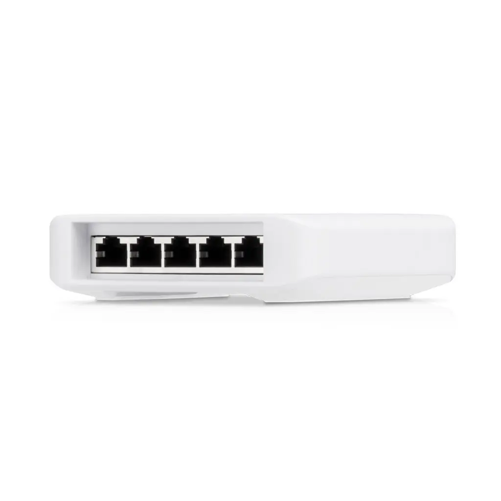 PoE FlexibilityThe USW-Flex supports a maximum PoE output budget of 46W when powered by 60W 802.3bt PoE++. Four ports offer auto-sensing 802.3af PoE output to power multiple devices on the network.Versatile MountingThe USW-Flex can be installed horizontally or vertically making it ideal for desktop, magnetic wall-mount, and pole-mount installations.Indoor/Outdoor DesignThe USW-Flex is designed for indoor or outdoor use. With its weatherproof housing and versatile mounting options, the USW-Flex provides both flexibility and durability for environments with extreme temperature variationsCompatible ProductsThe USW-Flex powers a variety of products, including the UniFi Video Camera G3 Flex, UniFi Video Camera G4 Pro, and UniFi AC Mesh AP, which use 802.3af PoE. To enable its maximum power budget of 46W, the USW-Flex can be powered by the USW-Industrial switch, which provides 60W of 802.3bt PoE++.Seamless IntegrationA single instance of the UniFi Controller running in the cloud can manage multiple UniFi sites within a centralized interface. Each site is logically separated and has its own network monitoring, configuration, maps, statistics, and admin accounts.