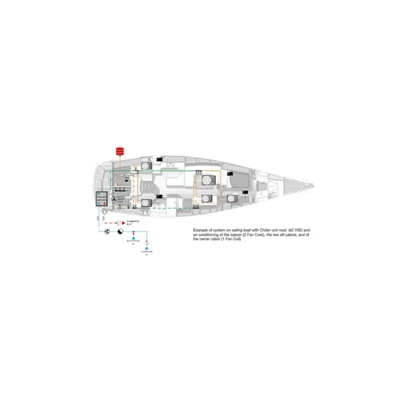 This marine chiller system allows you to enjoy an optimal temperature in any area of the vessel, even in hot Mediterranean summers. Designed for large boats, it offers efficient and sustainable air conditioning thanks to its high cooling capacity.