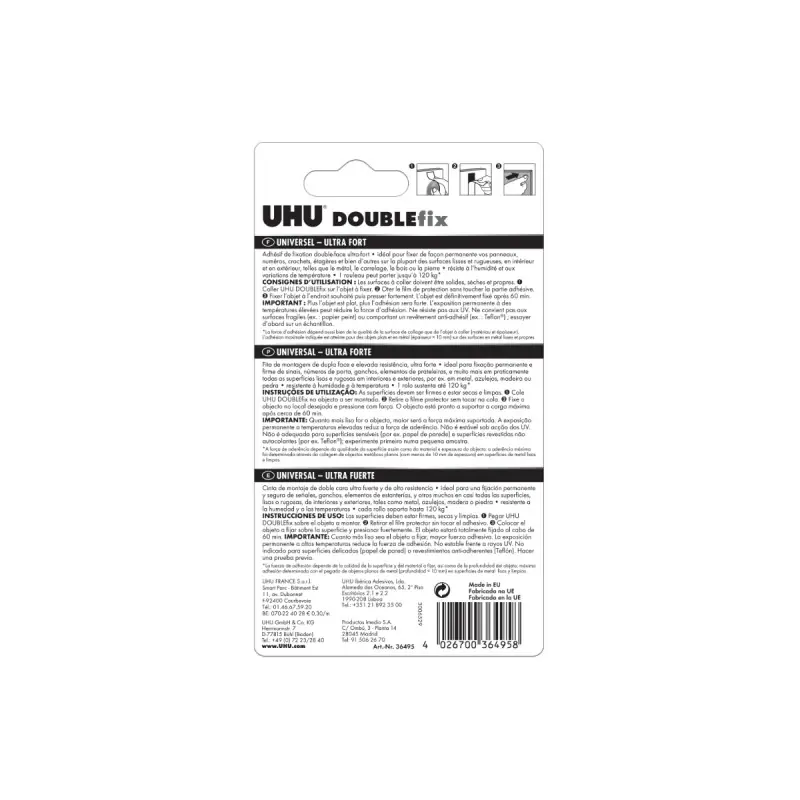 Put your DIY tools aside with the UHU Doublefix 36495 adhesive tape you can fix heavy objects to surfaces indoors or outdoors. It offers exceptional double-sided adhesive grip for easily mounting your coat hooks, decorative items, and more. Ultra-strong, the tape is suitable for most smooth surfaces like metal, tiles, glass...