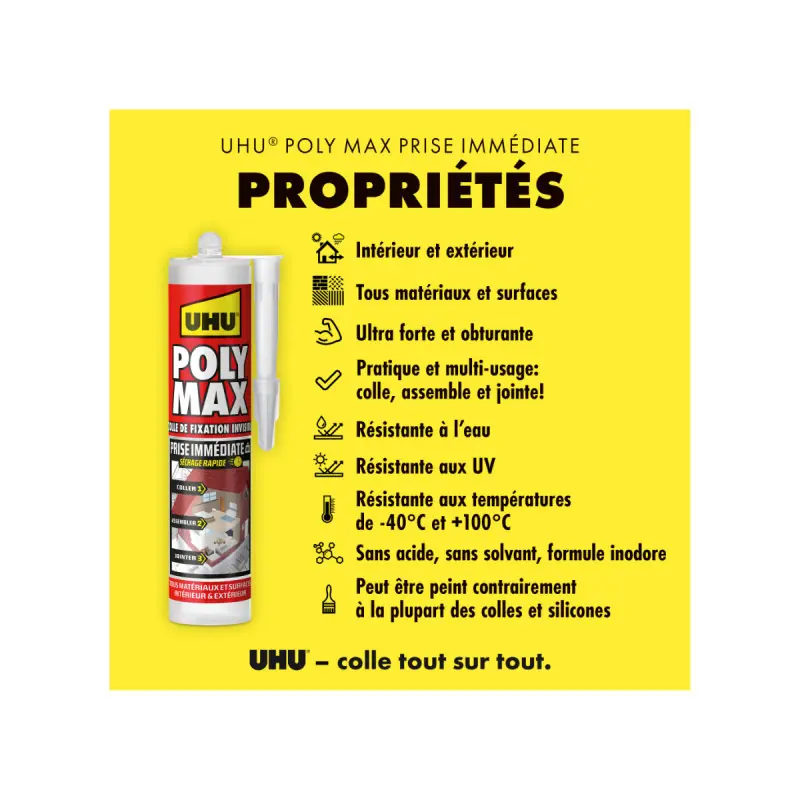 Very useful for bonding, sealing, and plugging on a wide majority of materials thisUHU pack contains a Power Pistol cartridge gun and two cartridges of instant grab Polymax sealant. Ultra-resistant, the Power Pistol sealant gun allows for precise and easy application of silicone. ThePolymax Invisible Instant Grab Sealant is designed for a very strong initial grab and rapid resistance. The product can be used on a wide variety of materials (glass, stone, iron, aluminium, steel, and many others) and also on numerous surfaces, whether smooth, porous, or non-porous. After application, the sealant is odourless and invisible, in addition to having resistance to extreme temperatures, water, UV, and weather conditions.