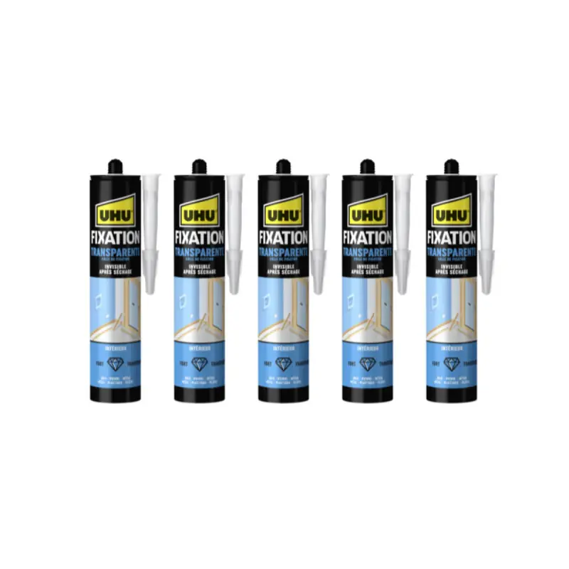 A pack of 5 UHU Transparent Fixing Sealant cartridges - 310 g