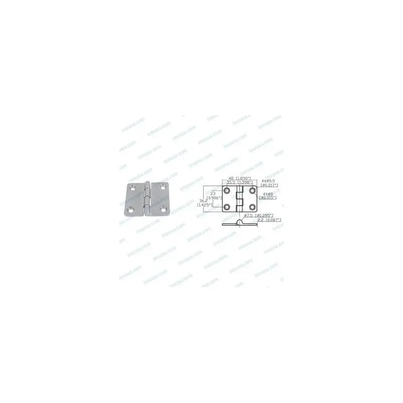 The UP hinge made from AISI 316 stainless steel is a robust and durable solution for onboard installations. Its size of 36.2 x 48 mm makes it ideal for panels, doors, and hatches in demanding marine environments.