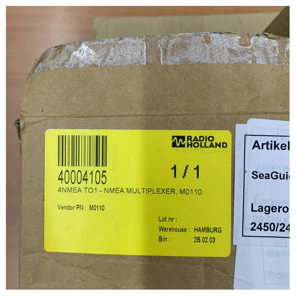 The Veinland NMEA 0183 Multiplexer M0110 is specifically equipped with four NMEA 0183 inputs (4NMEA) that are suitable for receiving data. The signals are then combined into a single NMEA 0183 output (1-output). This device operates on a wide power supply voltage, making it flexible for various types of vessels. Model number: M0110. The configuration of 4 to 1 is designed for effectively managing the data load and ensuring the integrity of maritime communication.