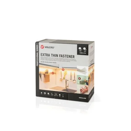 Product width presentations of 20 and 50mm and lengths of 5 and 25 meters Colours: Black, white Base material: Polypropylene & Polyamide Very low hook and loop profile for indoor use Low adhesive temperature ranges: -15ºC to +60ºC Easy and fast (dis)mounting Extremely useful for areas where low profile connection is needed Useful during maintenance tasks, flexible to support moves, adds, or changes Increased performance in combination with mechanical systems (nailing, screwing, stapling) Easy touch fastening & light weight providing time & labor savings For applications where medium cycling is required Increased creativity Labor savings: greater productivity, repositionable & easy to remove, safety & no weather restrictions Environmental benefits: Reduces air pollution by chemical components or solvents, less waste / residue and recyclable