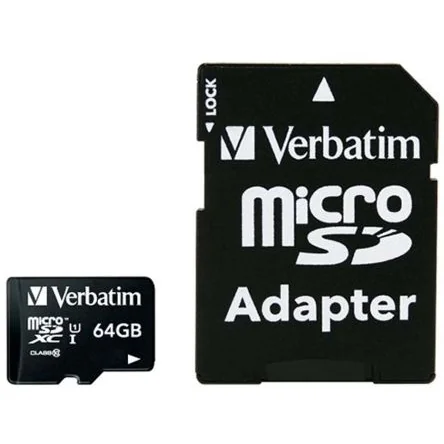 Verbatim Micro SD Card With AdapterThe Verbatim microSDXC card with adapter has a storage capacity of 64GB and class 10 rating. The microSDXC memory card is designed especially for mobile phones. This tiny memory card consumes too little power therefore it preserves the battery life of your mobile phone. It can also be used in GPS devices, MP3 players, digital cameras and PDAs. The list of compatible devices grows daily and verbatim microSD memory cards are compatible with all the devices that have an SDHC/SDXC slot when used with the SD adaptor. This card contains the latest copyright management technology to ensure legal transfer of digital assets (pictures, movies, music, etc.) over computer networks for personal use. Note: Verbatim microSDXC memory cards can only be used on microSDXC host products featuring the latest SDXC technology. PC or laptop users need to download an SDXC compatible driver for the SD slot from the Microsoft Download Centre. Compatible with Windows XP SP2 onwards and Windows Vista SP1 onwardsFeatures and BenefitsMinimum write speed is 10MB/Sec Read speed up to 80MB/Sec