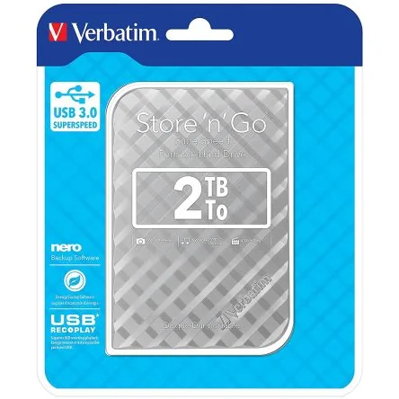 Easily store and transfer files with the Verbatim 2 TB Portable Hard Drive featuring USB 3.0 speed.
