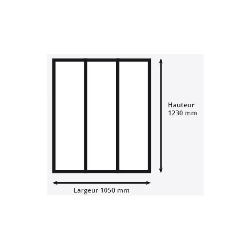 The indoor aluminium skylight - 3 panes with decorative crossbars - Black - 105 x 123 cm is the perfect element to partition your spaces while maintaining natural light. Its elegant design and harmonious proportions make it a true aesthetic asset for your interior. Thanks to its ultra-slim aluminium profiles of only 28 mm in face view, it offers a modern and clean look that easily integrates into all styles of decoration. Moreover, the decorative horizontal crossbars add personality to the skylight. This skylight is easy to assemble and install, adapting to all types of supports. It comes with its panes and wall fixings for simplified installation. Its installation adapts to your project: it can be installed as a partition edge without adding a profile or at an angle with the addition of the corner post profile (sold separately). Its black thermolacquered aluminium (RAL 9005) with a fine textured finish (sanded) provides great resistance while enhancing its design. This skylight is also repairable and movable, offering valuable flexibility in case of changes to your interior layout. Manufactured and designed in France, it guarantees impeccable quality and optimal durability.