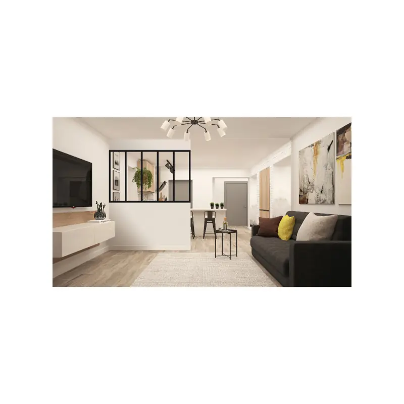 Theindoor aluminium partition - 5 panes - Sanded black - 173 x 123 cm is a decorative element that will enhance your living space. In a kitchen or in another room, this French-made partition will add character to your interior and allow light to enter while creating a separation. It thus combines utility with aesthetics. The aluminium frame is covered in an elegant sanded matte black (RAL 9005 FT) and features a retaining wedge system that allows for very easy glass replacement. This is a significant advantage over other partitions available on the market. Therefore, if you wish to replace a pane, it is not necessary to change the entirety of the glazed section. The assembly is also very simple thanks to a mechanical assembly using brackets and screws.