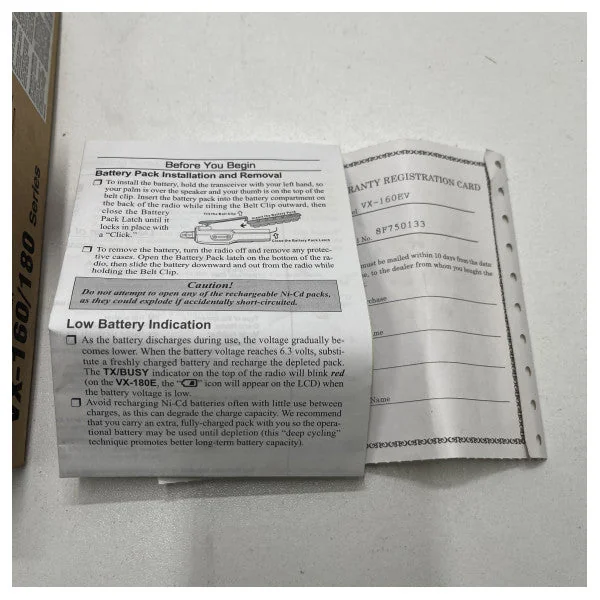 Vertex Standard VX-160 VHF/UHF handheld radio: robust and reliable for professional communication The Vertex Standard VX-160 is a powerful and user-friendly handheld radio that is perfect for professional users in various sectors. With its robust construction, clear audio, and extensive features, the VX-160 is a reliable companion for demanding environments. Features: VHF or UHF frequency bands: Choose the band that suits your needs. 16 channels: Save your favourite channels for quick access. 5 Watt transmission power: Ensures clear range, even in challenging environments. MIL-STD 810 C/D/E ruggedness: Resistant to dust, water, and shocks. Long battery life: Stay in communication all day with the included Ni-MH battery. Clear audio: Powerful speaker and noise suppression for optimal voice quality. CTCSS/DCS encoder/decoder: For subtle channel occupancy and privacy. 2-tone and 5-tone decoder: Receive calls from other radios with these signalling systems. Emergency call function: Provides extra safety in emergencies. Easy operation: Intuitive buttons and menus for user convenience. Specifications: Frequency range: VHF: 136-174 MHz UHF: 400-470 MHz Transmission power: 5 Watt Channels: 16 Battery: 1100 mAh Ni-MH Battery life: Up to 14 hours Dimensions: 58 x 102 x 33 mm Weight: 280 g