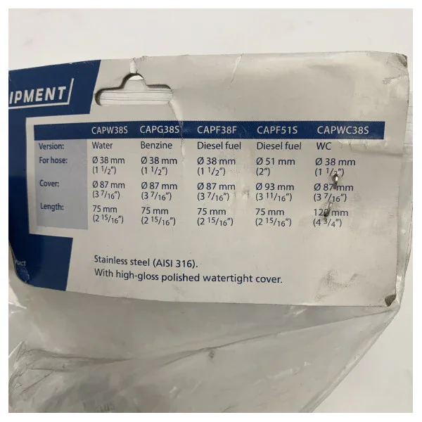 Vetus CAPF51S is a deck plate specially designed for safely filling fuel on your boat. This model is suitable for diesel fuel and has a hose connection with a diameter of 51 mm. The deck plate is made of high-quality stainless steel (AISI 316), which ensures optimal corrosion resistance and a long service life. The cover has a high gloss finish and is equipped with a waterproof seal for extra safety on board. The diameter of the cover is 93 mm and the total length is 128 mm. With this deck plate, you choose quality, reliability, and a neat finish for your fuel system.