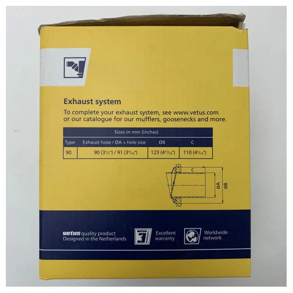 - Dimensions: suitable for exhaust hoses with a diameter of 90 mm (3 1/2 inches)