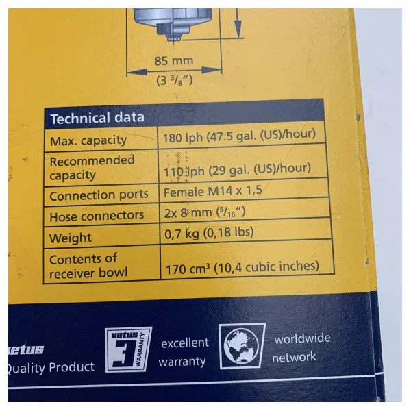 By effectively separating water and filtering the fuel, the Vetus WS180 ensures a clean and optimal fuel supply. This results in better engine performance, lower fuel consumption, and a longer lifespan for your engine. The Vetus WS180 is not just a filter; it is an investment in the reliability and durability of your boat.