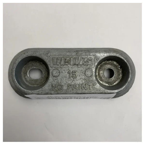 The Vetus ZINK15C is a robust anode with a weight of 1.0 kg. The anode has a length of 150 mm, a width of 60 mm, and a height of 25 mm. The attachment is done via two holes with a hole spacing (centre to centre) of 80 mm, suitable for an M10 bolt. This model is primarily intended for hull and transom mounting and is made from pure Zinc.