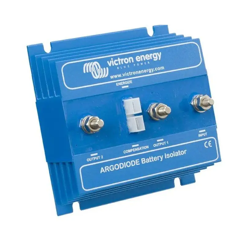 The Victron Argodiode load splitter enables efficient energy management between two battery banks onboard without the risk of cross discharge. It uses diodes that isolate each battery, preventing a discharged battery from affecting the other.