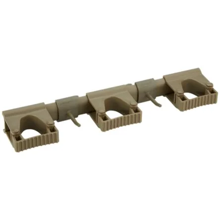 The Vikan hygienic hi-flex wall bracket system provides a flexible solution for storage of your cleaning tool and utensil in any area of your site. The rail is easily attached to the 4 wall mounts by sliding it on from the right or left side. Available in brown colour.The Grip band module can hold products with a diameter of 28-33 mm The Hook module can hold products weighing up to 3 kg