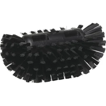 The oval-shaped brush with stiff bristles is effective for scrubbing inside large industrial tanks and other large container-like equipment. The rounded edges work well to clean down the sides of equipment where the entry point is from above. It also fits well into large channel drains.