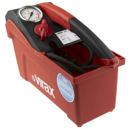 Virax Manual Pressure Test Pump - 50 Bar. From Virax, a 50-bar test pump designed for checking plumbing after installation or repair. The manual test pump can also be used to locate leaks in water pipes or central heating. Compact in design, the 5 litre pressure pump is ideal for use in applications where access is tight, and space is limited. Manufactured from high-quality materials, the Virax 262035 pressure pump features a robust plastic tank that is lightweight and shock-resistant. A flexible 1.5m hydraulic hose with 3/8 and BSP couplings are included for secure pipeline connections. Featuring a nylon strainer and filter on the inlet it helps to block particles exceeding 0.1mm diameter from entering and causing damage to the pump mechanism. Additionally, the 50 bar models include the Virax EA85 anti-limestone patented system. This extra feature prevents any blockages due to hard water or other deposits building up on the ball in the piston. Features and Benefits. Easy to carry thanks to the lever locking system Ergonomic soft-touch lever Compact and lightweight Robust, shock-resistant plastic tank Extremely accurate manometer, 1.6 class Easy to read 1 bar graduations Supplied with 3/8 and inch BSP couplings Suitable for use with water, oil* and Glycol* (*requires rinsing after use*) 5 litre tank capacity Weight 4.2kg. Applications. The Virax pressure test pump is used in a wide range of both domestic and industrial testing applications. The manual pressure pump is used by technicians and engineers to test a system that has no leaks after repair or maintenance work has been carried out. Some of the more common areas of use are. Central heating systems Plumbing and pipeline Plant and services Pressure and flow