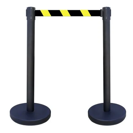 Viso Black Steel Retractable Barrier, 3m, Black, Yellow Tape - RECO22BKNJ