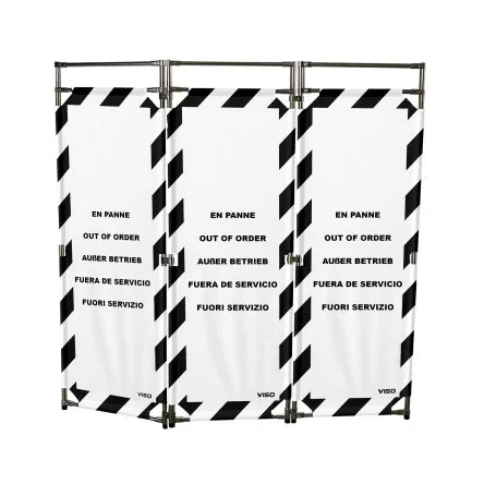 Durable stainless steel folding barrier in black and white, perfect for versatile space management.