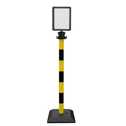 Durable black and yellow plastic barrier post designed for effective safety and crowd control.