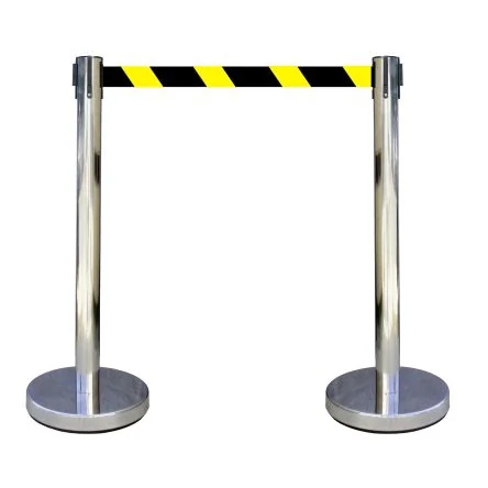 - Viso Chrome Stainless Steel Retractable Barrier, 3m, Black, Yellow Tape - RECO22SRNJ